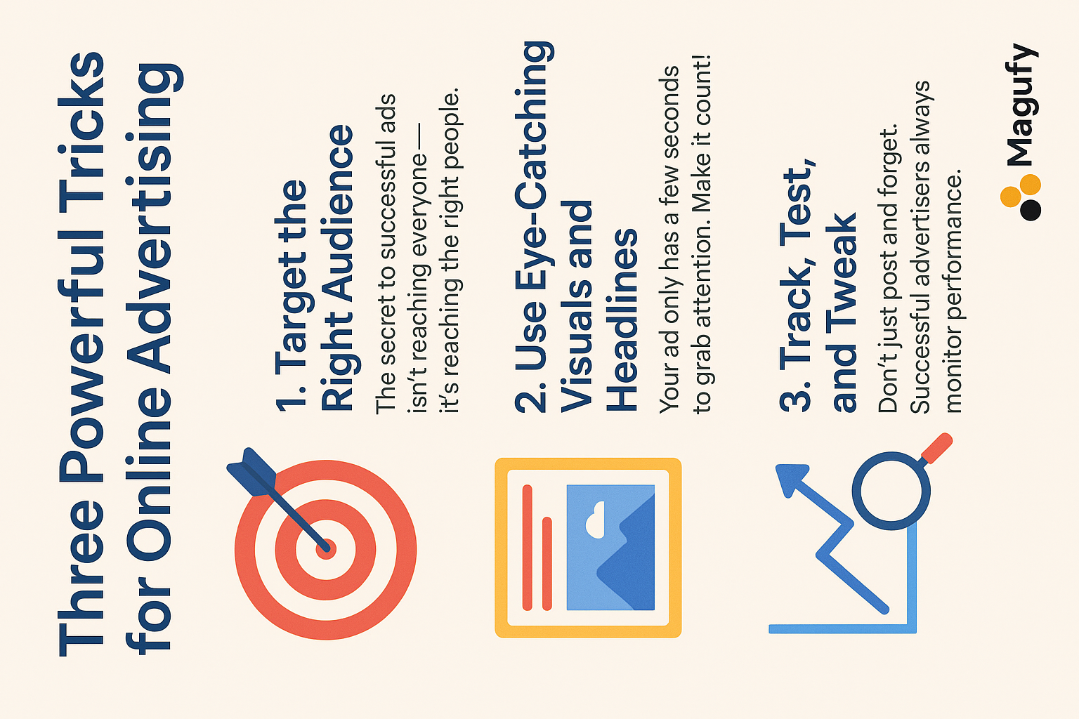 Online advertising has become one of the fastest ways to grow a business, reach new customers, and boost sales — especially in today’s mobile-first world. Whether you’re promoting your products or posting services on Magufy.com, these three simple but powerful tricks can help your ads stand out and perform better.